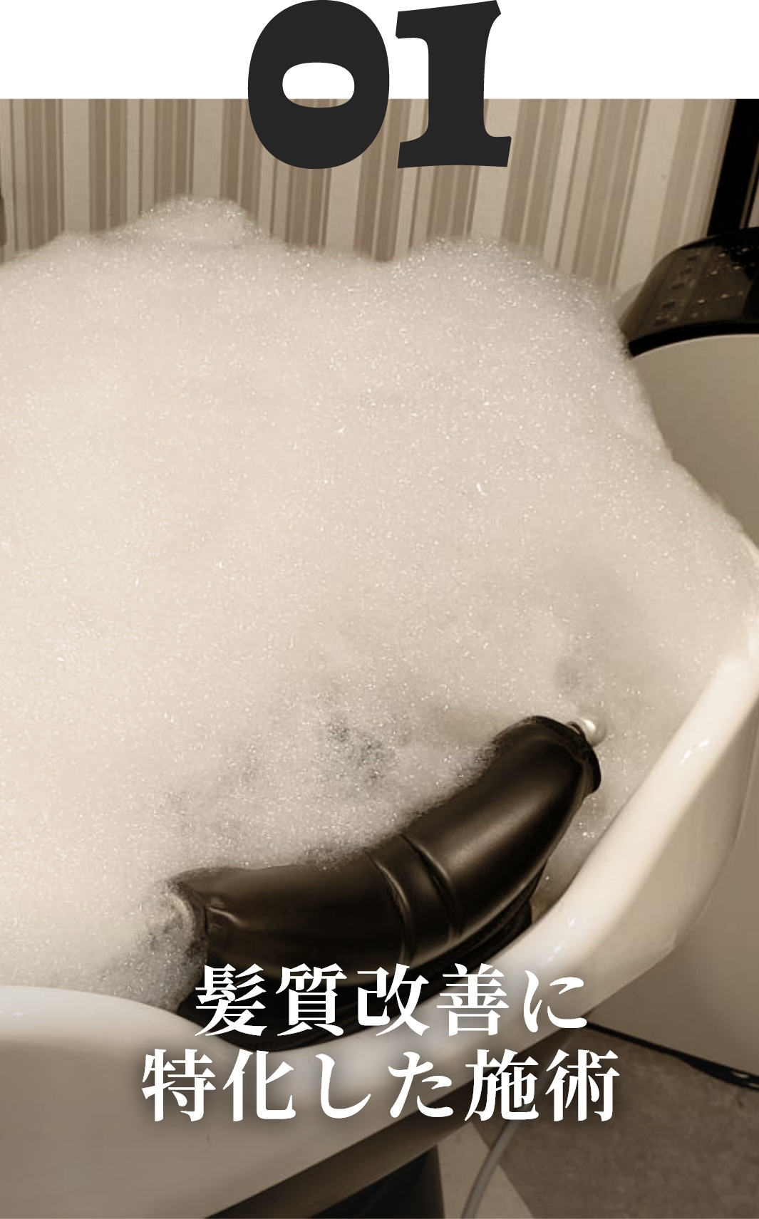 さらに、県内初導入のオゾン泡(ラテスパ)によるケアで、髪と頭皮を内側から健康に整え、美しい艶髪へと導きます。